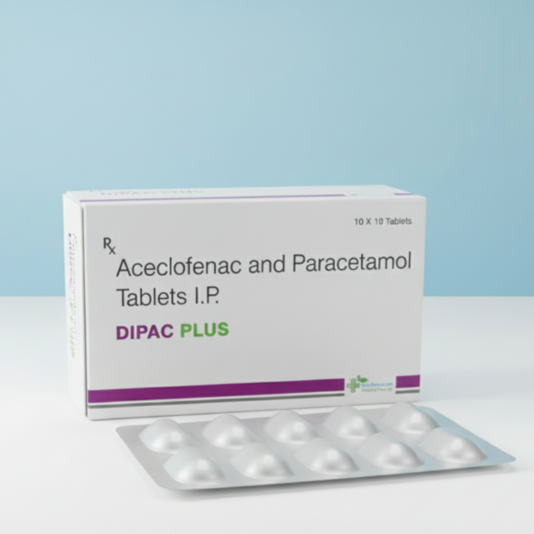 DIPAC PLUS Tablets combine Aceclofenac and Paracetamol to deliver reliable pain relief with anti-inflammatory action. Aceclofenac helps reduce inflammation and improves joint mobility, while Paracetamol provides fast and dependable analgesic and antipyretic effects.